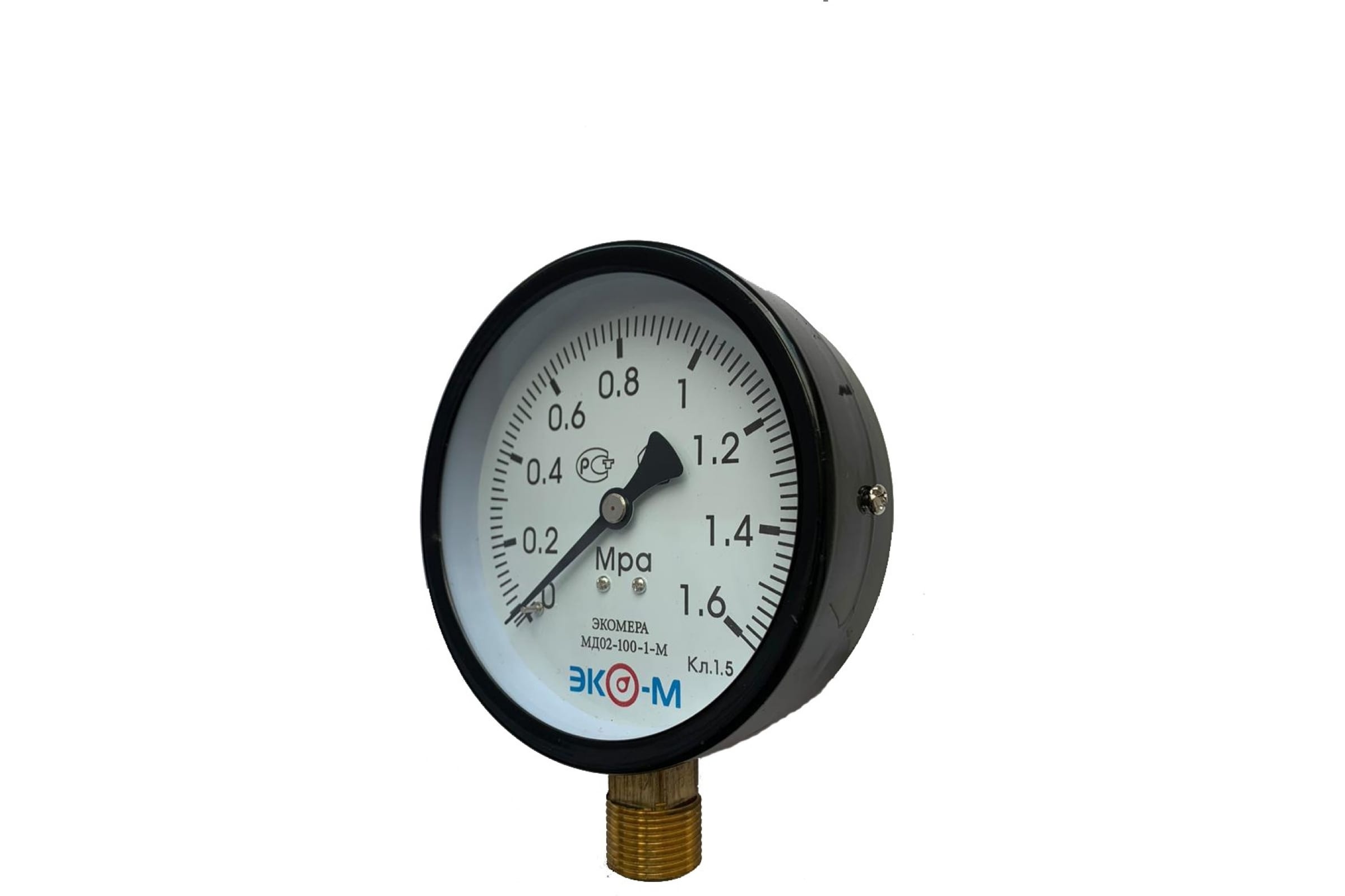 Преимущества:\nМанометр изготовлен из качественных материалов, поэтому отличается долговечностью и надежностью. Корпус достаточно герметичный, чтобы противостоять проникновению механических частиц. Прибор выдерживает критические перепады температуры окружающей среды. Это не сказывается на точности показаний, которые находятся в пределах 0…16 бар.\n\nПоверка:\nЕсли ЭКОМЕРА МД02-100мм используется в сфере госнадзора, он должен проходить поверку каждые 2 года. Периодический контроль позволит официально продлить срок службы прибора.