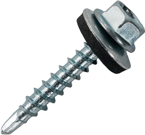 зготовлен из оцинкованной стали, имеет шестигранную головку и бур для сверления металла толщиной до 2 мм.\nДля крепления к деревянному основанию используются саморезы диаметром 4,8мм без предварительного сверления прикрепляемого материала толщиной до 2,5мм. Для крепления к металлическому основанию используются саморезы диаметром 5,5мм и 6,3мм без предварительного сверления прикрепляемого материала толщиной до 5мм. спользование прокладки EPDM обеспечивает высокую степень герметизации соединения при перепадах температур от -40°С до +120°С. Для облегчения монтажа используется специальная шестигранная магнитная насадка по размеру.