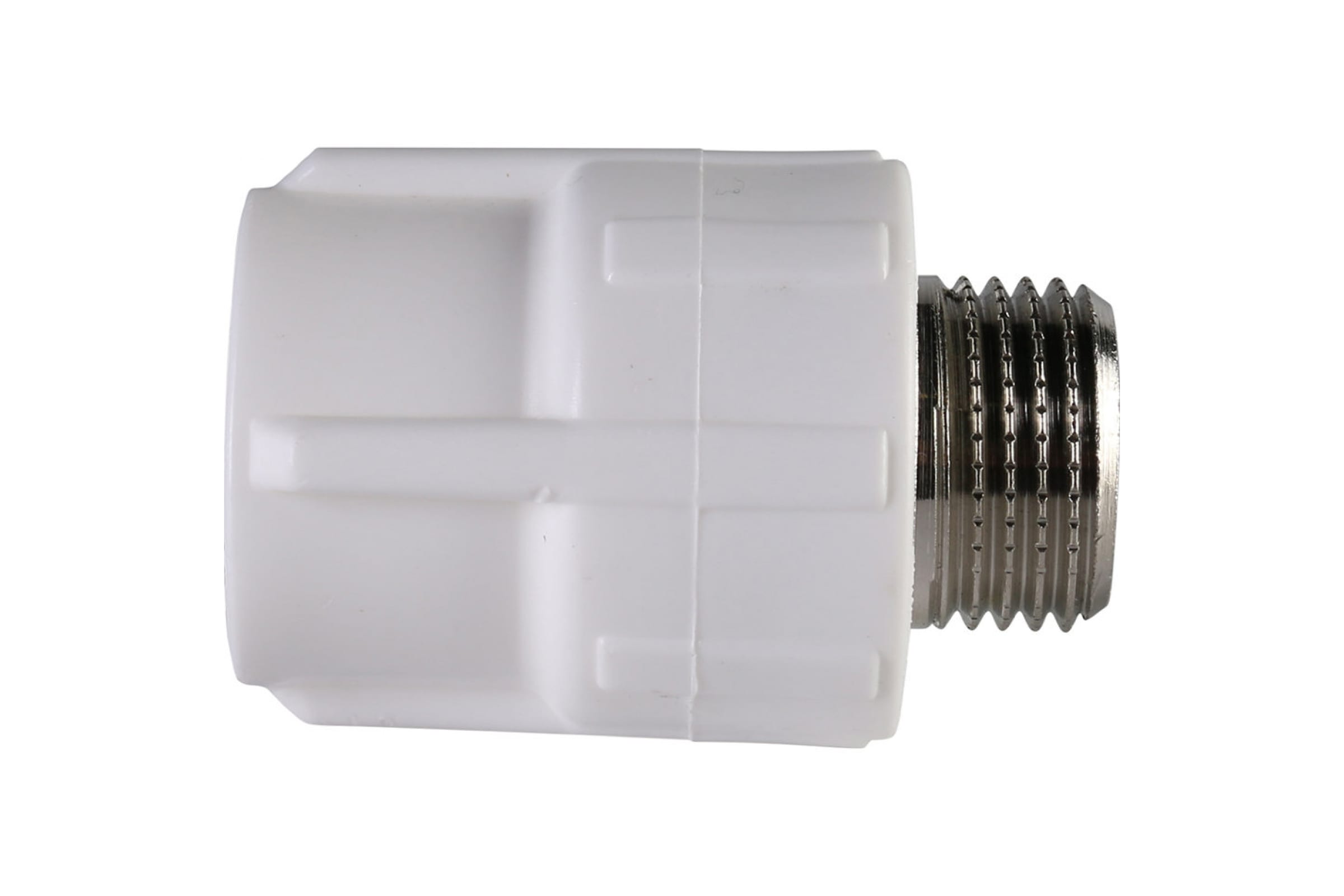 Комбинированный полипропиленовый фитинг. спользуется для соединения полипропиленовой трубы и элемента системы с дюймовым резьбовым соединением. Латунные части производятся методом горячего штампования, пластиковые - методом литья под давлением.Муфты комбинированные с наружной резьбой используются при максимальной температуре перекачиваемой воды - 80ºС (кратковременная - 95ºС). Гарантия 10 лет. Срок службы - не менее 50 лет.\n